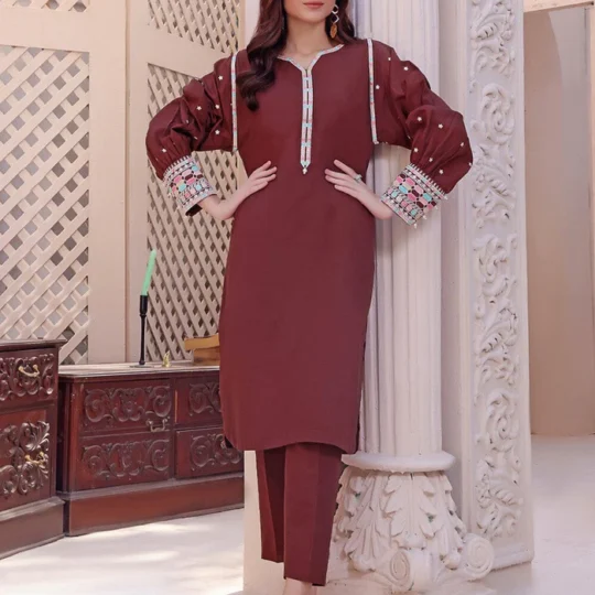 Embrace effortless style with the 2PC Stitched Cambric Shirt & Trouser (RKT-025) by KHAS. Made from high-quality cambric fabric, this outfit offers a perfect blend of comfort and elegance for daily and semi-formal wear. The soft texture and neat stitching highlight KHAS’s attention to detail, while the subtle design ensures a classy, timeless look. Ideal for women who love chic yet comfortable fashion.