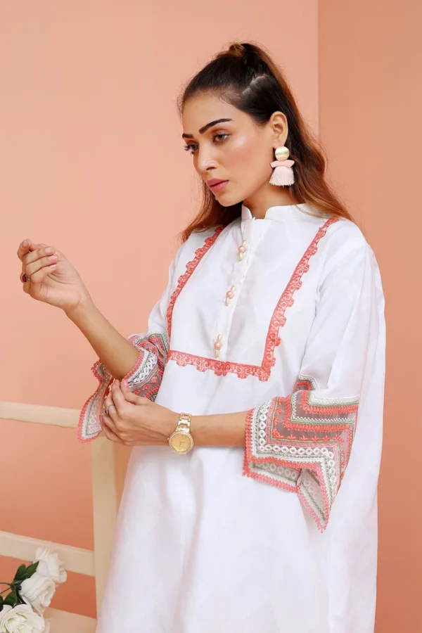 Stylish 2PC stitched cambric suit by KHAS, designed for comfort and elegance, perfect for everyday wear with its soft fabric and refined stitching.
